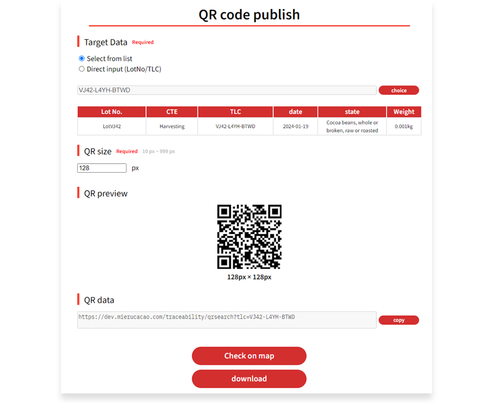 MIERU-CACAO (ミエル-カカオ)のトレーサビリティーは、トレーサビリティーのロットコード、重要追跡イベント、主要データ要素、その他の情報に基づいて、農場から食べるまでのフードバリューチェーンの付加価値の明確な見える化が可能になります。(カカオ⾖とカカオ製品) また、⾷品事故が発⽣した場合、バリューチェーンのトレースを即座に行い、EU、⽶国、⽇本の規制当局や購⼊者に報告、対応することが可能になります。